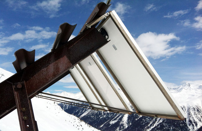 Eine Pilotanlage mit 51 Panels auf Lawinenverbauungen in Bellwald speisen heute zwischen 8 bis 10 kW ins Netz ein.